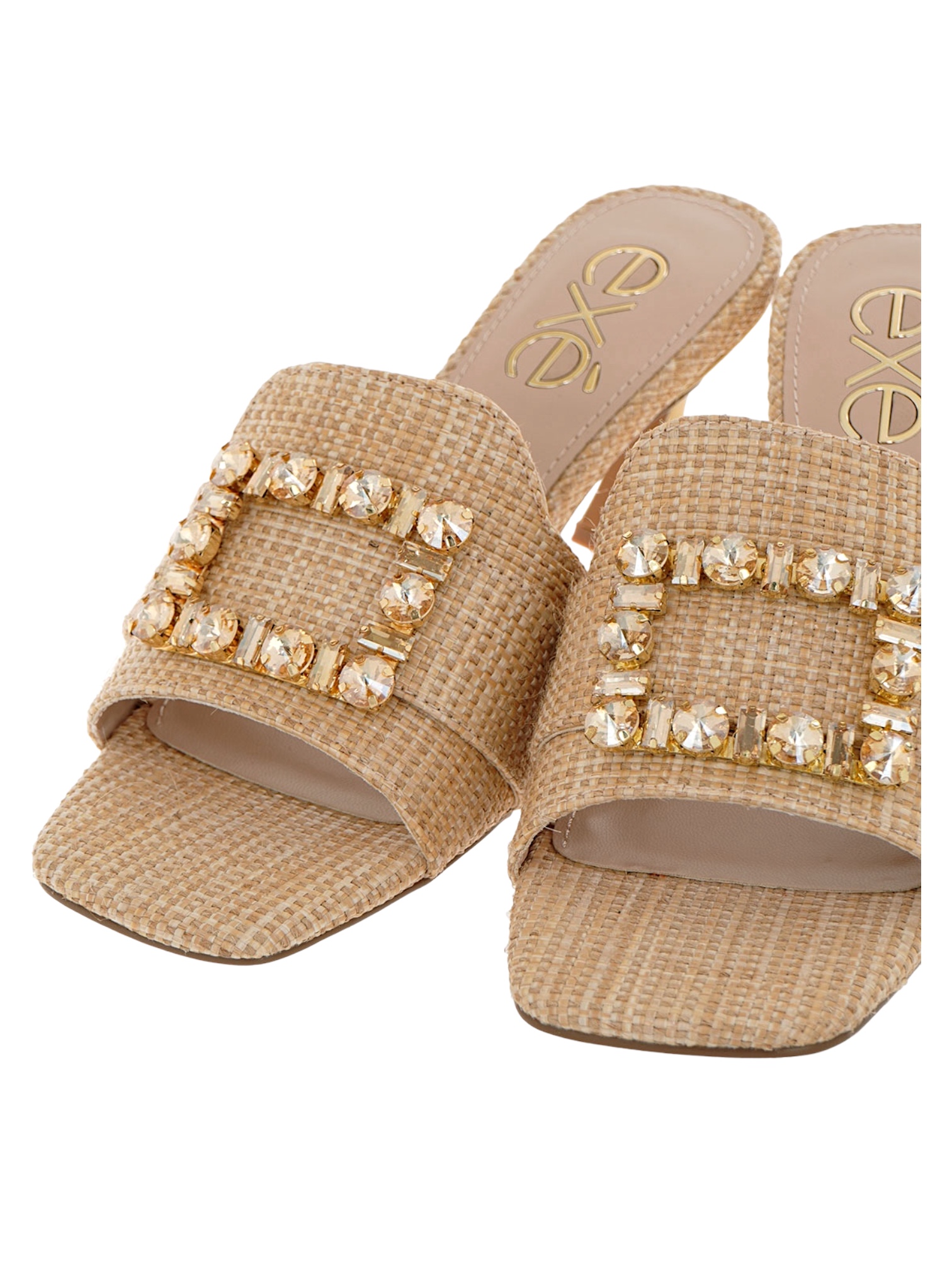MULES από τη συλλογή της εταιρίας EXE της σεζόν Άνοιξη - Καλοκαίρι 2024. Σύνθεση : ΥΦΑΣΜΑ με τακούνι ΜΕΣΑΙΟ - 7,5 cm