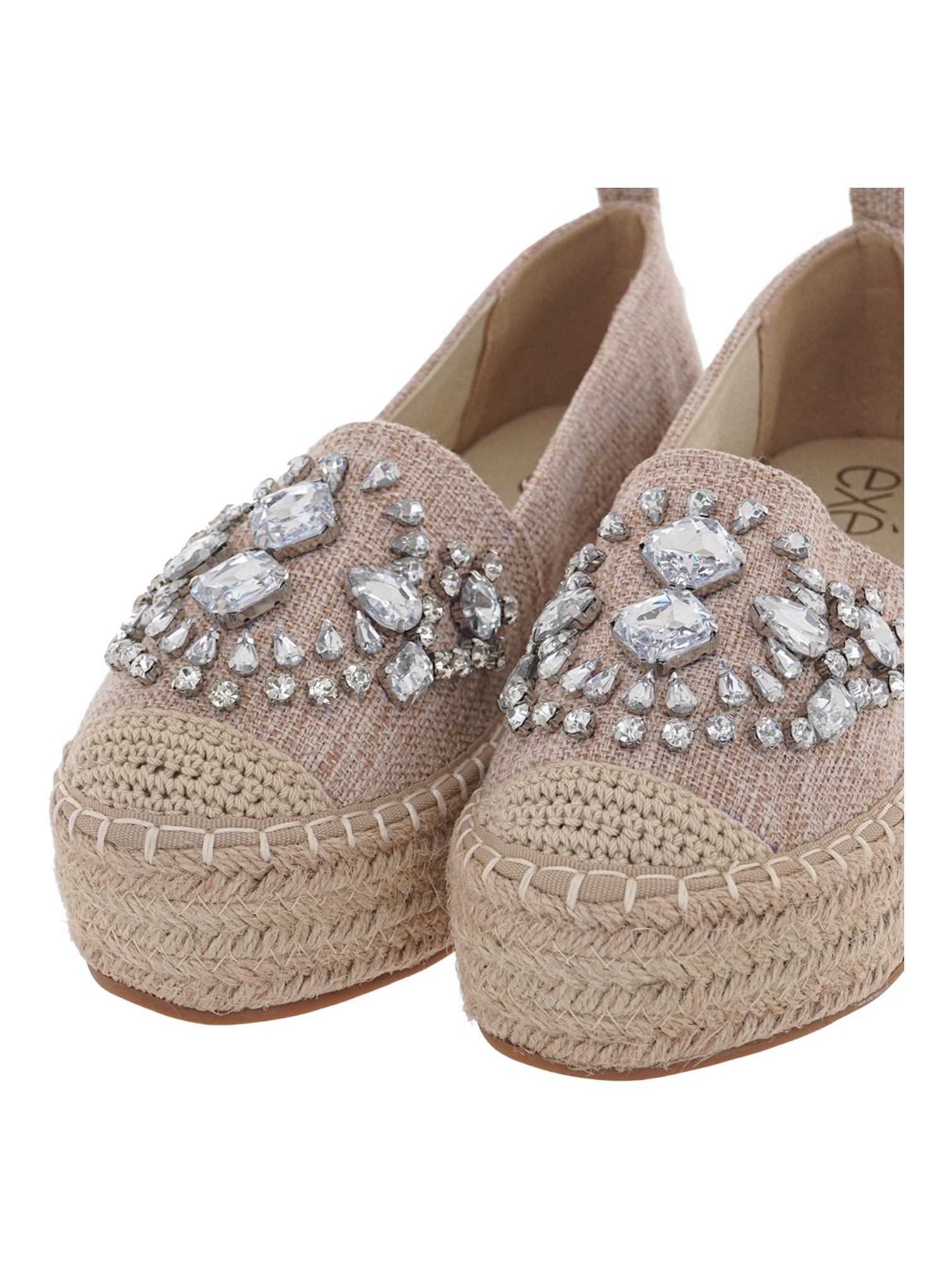 Πληροφορίες:FLAT PLATFORMS από τη συλλογή της εταιρίας EXE της σεζόν Άνοιξη - Καλοκαίρι 2024. Σύνθεση : ΥΦΑΣΜΑ-ΜΕΤΑΛΛΙΚΟ με τακούνι ΜΕΣΑΙΟ - 5 cm
