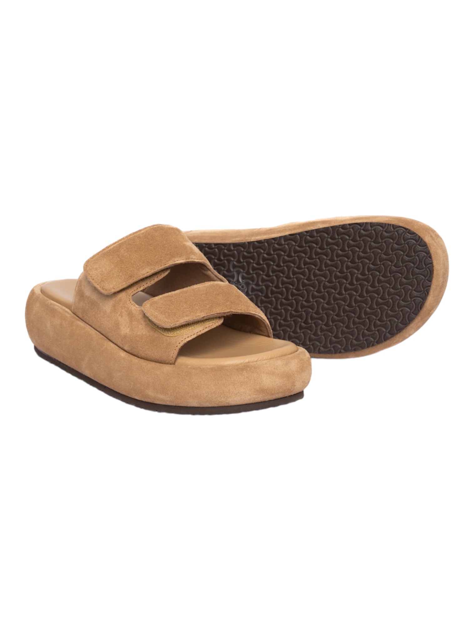 Puffy Sandals με πάτο από δέρμα. Υλικό suede δέρμα. Αντιολισθιτική σόλα λάστιχο. Υψος 5cm